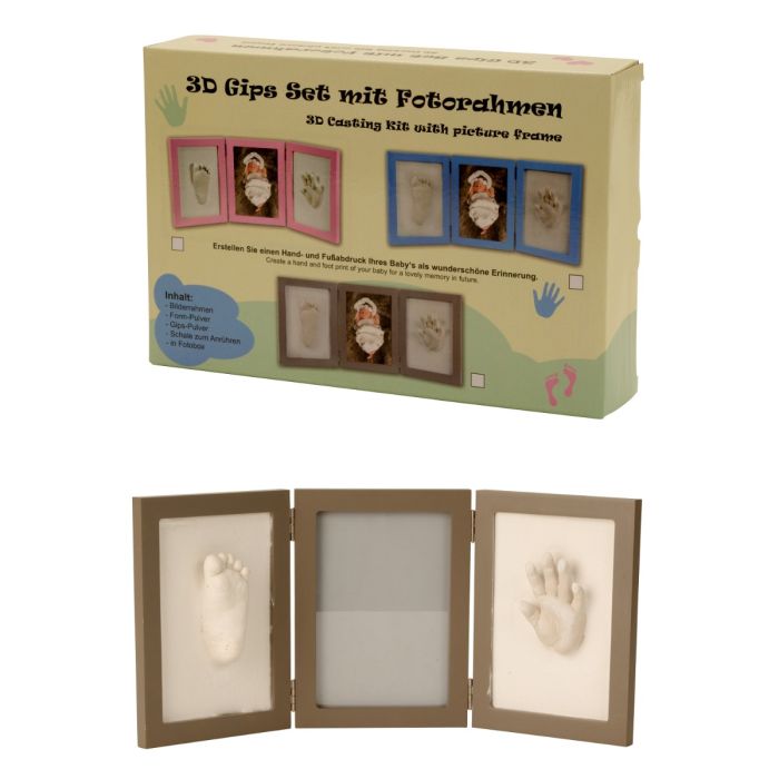 Skab et varigt minde om de søde, små babyfødder og hænder med dette sæt. Indeholder formpulver, gipspulver, skål til omrøring og grå billedramme.