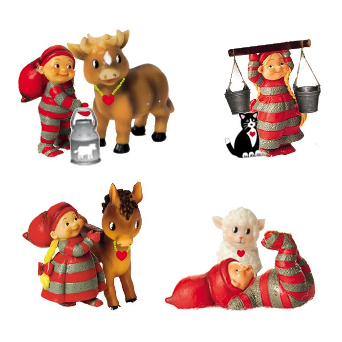 Babynisserne på landet har travlt med arbejdet på gården, hvor der både skal fodres, bæres og passes dyr. De små nisser tager flittigt fat og hjælper til med alt, hvad der hører bondegårdslivet til og altid med et smil og masser af julestemning. Hver figur viser en babynisse midt i arbejdet på gården, udført i polyresin med fine detaljer og gode farver, der indfanger den hyggelige, landlige atmosfære. Nisserne fås i fire varianter: babynisse med hest, lam, ko eller åg på skulderne hver med sin egen særlige charme. Babynisserne er designet af Susanna Hartmann og kommer fra danske Pobra, kendt for deres klassiske og nostalgiske juleunivers med de små nisser i rødt og gråt nissetøj. Disse figurer passer godt sammen med babynissernes bondegård og resten af serien, så du kan skabe et stemningsfuldt nisselandskab med et strejf af landlig hygge og juleeventyr.