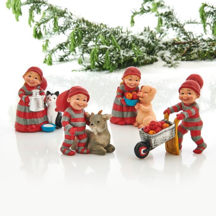 Babynisserne hjælper til på landet, hvor der er travlt med at fodre alle de søde bondegårdsdyr. Hver figur viser en lille babynisse i selskab med et dyr. Figurerne er fulde af varme, charme og julestemning. Du kan vælge mellem en babynisse med kat, ged, gris eller trillebør, hvor foderet gøres klar til dyrene. Figurerne er udført i polyresin med fine detaljer og bløde farver, der giver et hyggeligt og landligt udtryk. Babynisserne er designet af Susanna Hartmann og kommer fra danske Pobra, som er kendt for deres klassiske og nostalgiske juleunivers med de elskede babynisser i rødt og gråt. En dejlig serie julefigurer, der passer godt sammen med babynissernes bondegård og de øvrige figurer i det landlige nisselandskab.
