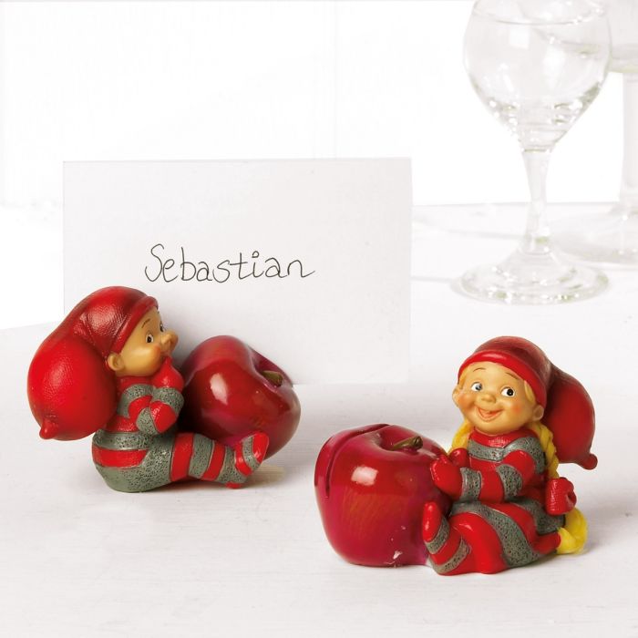 De søde babynisser har taget plads ved julebordet. De er klar til at byde gæsterne velkommen med et smil og et rødt æble. Hver figur holder på et stort, blankt æble, der fungerer som holder til bordkort og samtidig bringer et strejf af nissehygge til opdækningen. Babynisse med æble til bordkort findes i to varianter: en nissedreng og en nissepige. Begge er udført i polyresin med fine detaljer, varme farver og glade udtryk. De passer perfekt på julebordet, men kan også bruges som dekoration på hylder eller i nisselandskabet. Babynisserne er designet af Susanna Hartmann for danske Pobra, kendt for deres elskede og nostalgiske juleunivers med babynisser i rødt og gråt nissetøj. En charmerende og dekorativ lille julefigur, der bringer smil, tradition og hyggelig stemning til julens måltider.