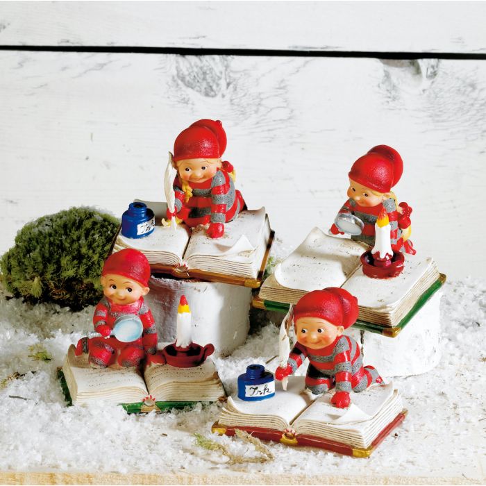 De flittige babynisser har travlt ved bøgerne, hvor julens hemmeligheder og historier bliver skrevet, læst og undersøgt med stor koncentration. Nogle skriver med fjerpen og blæk, mens andre læser højt eller studerer siderne med lup alt sammen i bedste nisseånd. Babynisse med bog findes i fire varianter, hver med sin egen lille scene, fyldt med liv, varme og klassisk nissehygge. Figurerne er udført i polyresin med fine detaljer, varme farver og et legende udtryk, der fanger stemningen af juleforberedelser, fantasi og eventyr. Babynisserne er designet af Susanna Hartmann for danske Pobra, kendt for deres klassiske og nostalgiske juleunivers med de elskede nisser i rødt og gråt nissetøj. En hyggelig og stemningsfuld serie julefigurer, der bringer fantasi, fordybelse og julestemning ind i hjemmet. Passer godt som pynt på skrivebordet eller en hylde.