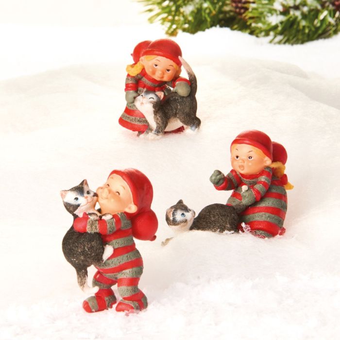 Der er leg og hygge i nisseboet! De små babynisser har fået selskab af deres nysgerrige kattevenner, og sammen leger de midt i julestemningen. Det er en sød og livlig scene, hvor der både er smil, kærlighed og klassisk nissecharme. Babynisse med kat findes i tre varianter: en nissedreng, der løfter katten op, og to nissepiger, hvor katten enten står eller ligger ved siden af. Figurerne er udført i polyresin med fine detaljer og glade farver, der fanger stemningen af jul, varme og leg. Babynisserne er designet af Susanna Hartmann for danske Pobra, kendt for deres klassiske og nostalgiske juleunivers med de elskede babynisser i rødt og gråt nissetøj. En sød og stemningsfuld serie julefigurer, der bringer leg, hygge og et strejf af kærlighed til dyr ind i julens dekorationer. Passer godt til nisselandskabet eller som pynt på hylder og borde.