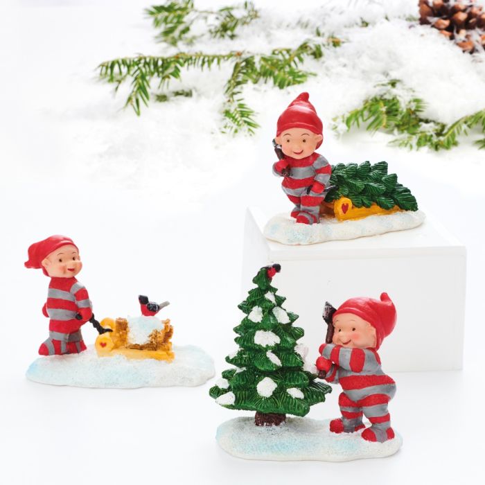 De små babynisser har travlt i skoven, hvor vinteren dufter af gran og jul. Her hjælper de til med forberedelserne, så alt er klar til julens fest. Nogle trækker kælken fuld af halm, andre slæber træ, mens én gør sig klar til at fælde et juletræ alt sammen med smil og nisseglæde. Babynisser i skoven findes i tre varianter: én med kælk med halm, én med kælk med træ, og én, der gør klar til at fælde et træ. Figurerne er udført i polyresin med fine detaljer og varme farver, der fanger stemningen af natur, tradition og klassisk jul. Babynisserne er designet af Susanna Hartmann for danske Pobra, kendt for deres elskede og nostalgiske juleunivers med babynisser i rødt og gråt nissetøj. En hyggelig og stemningsfuld serie julefigurer, der bringer naturens ro, arbejdsomhed og nisseeventyr ind i hjemmet. Ideelle til nisselandskabet eller som pynt på hylder og borde.