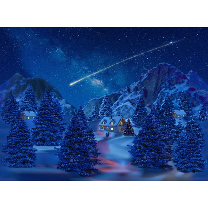Baggrund på lærred med lys med falling star effekt. Der er trykt direkte på lærred og det er klar til at blive hængt op. Man kan bruge det som billede eller baggrund. LED-lyset giver falling star effekten et naturtro udtryk. Batterier medfølger ikke.