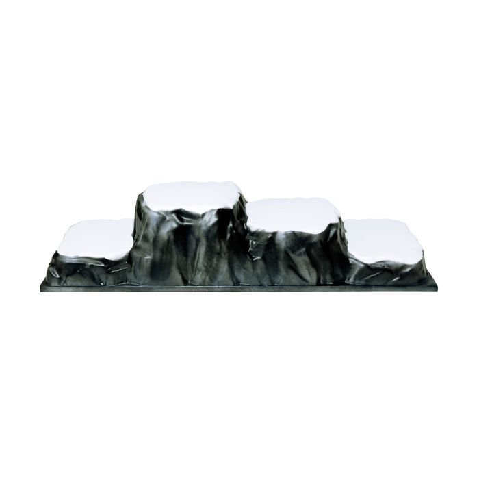 Bjergfundament trapper med plads til fire huse i forskellige niveauer. Denne platform er smallere end de andre og lavet af plastik.
