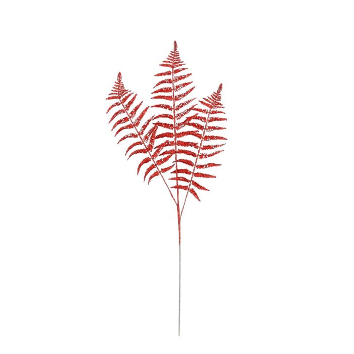Tre bregneblade sat sammen med et let og enkelt udtryk i glimtende rød farve. Brug bregnegrenen til at bryde farverne i en buket eller som enkeltstående pynt i en høj, smal vase.