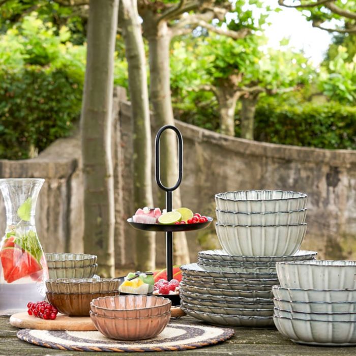 Corfu morgenmads og frokosttallerken i lysegråt stentøj fra Mica Decorations. Stentøjsserien er i flotte lysegrå nuancer med rillet mønster og mørk kant. Alle produkter i Corfu-serien er håndlavede og har derfor unikke former. Serien består af skåle, tallerkner og krus.
