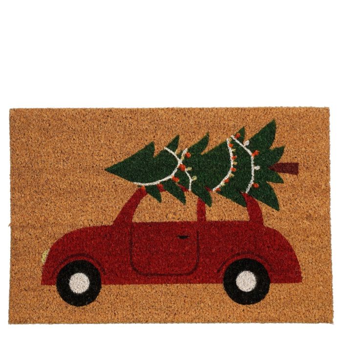 Dørmåtte med rød bil med juletræ på taget. Måtten er i god kvalitet fra House of Seasons. En hyggelig måde at byde højtiden og gæsterne velkommen ind.