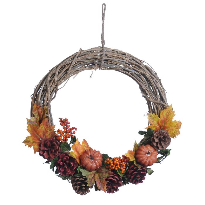 Efterårskrans i rattan med pynt