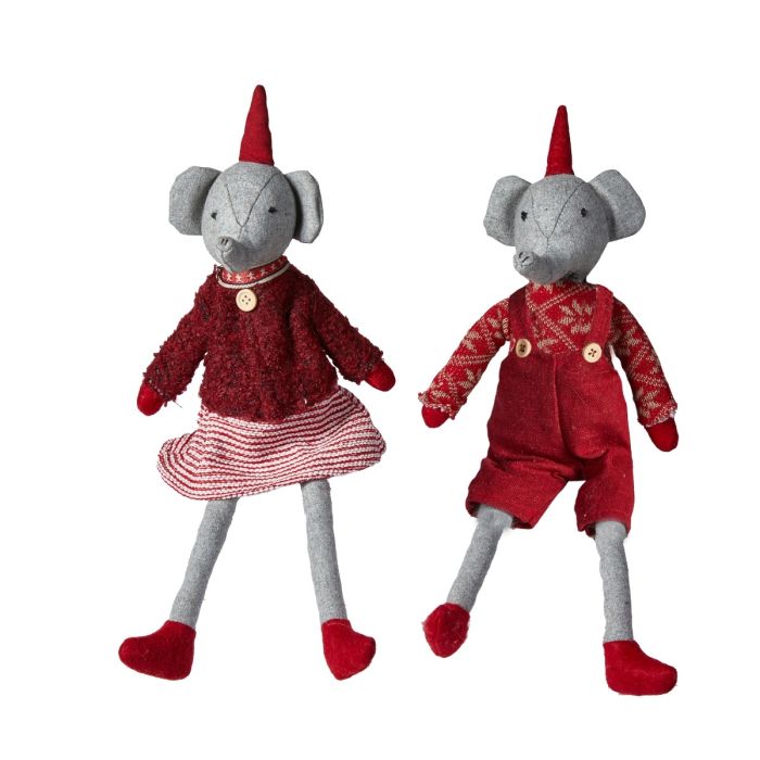 Meget søde elefanter med syet, vinterligt tøj i røde og grå nuancer og af blandede materialer. Elefanterne er fra Speedtsbergs serie med grise, mus, gæs og mange flere alle med fint juletøj og i blød og god kvalitet. Pynt en bænk, en trappe eller en kælk med de kære væsener eller glæd et barn med en ny juleven. Vælg mellem to varianter.