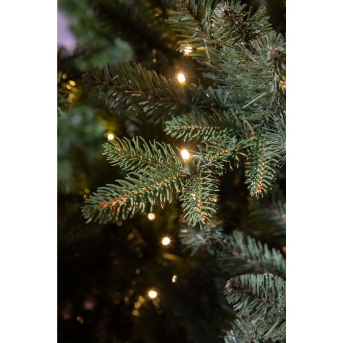 Elkins kunstigt juletræ med lys i meget god kvalitet fra Black Box. Elkin-serien står for meget vellignende, naturlige juletræer produceret i en blanding af pvc og pe, der gør nålene meget livagtige. Træet er trekantet med små grene, der stikker lidt længere ud end omridset. Grenene er der mange af, og hver lille gren er med tykke nåle. Juletræet er pyntet med 200 LED-lys. Elkins juletræerne findes i flere størrelser med eller uden lys på.