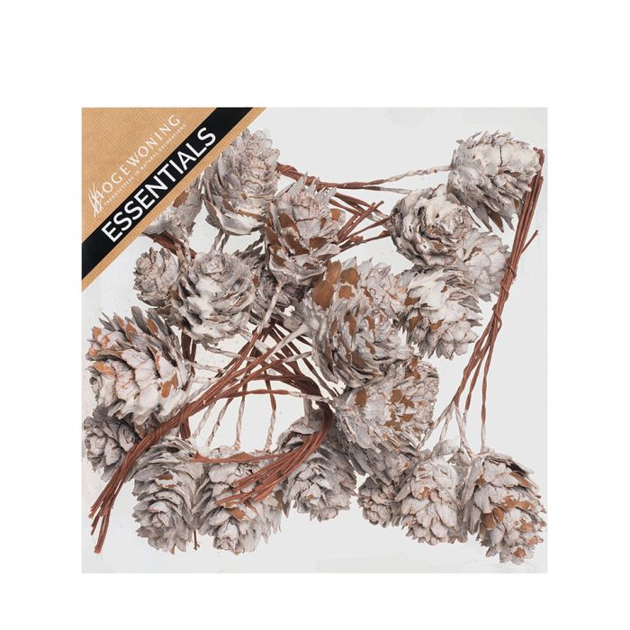 Ellekogler med wire. Brune ellekogler, der sidder på en lille metalwire som stilk. Der er ca. 35 stk. i en æske.