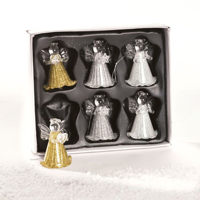 Engle i glas i guld/sølv/hvid 6 stk. i æske
