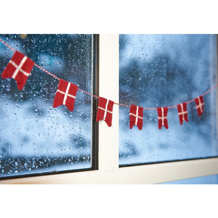 Flagranke med 8 stofsyede Dannebrogsspidsflag fra Speedtsberg. Flagranken passer godt til juletræet, studenterfejringer eller fødselsdage. Find flere flagranker her.
