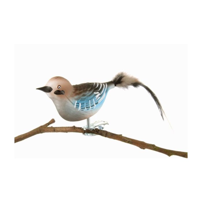 Denne skovskade i glas kombinerer naturens egne farver med klassisk glashåndværk på fineste vis. Hver fugl er mundblæst og håndmalet hos Glasbläserei Thüringer Weihnacht, hvor den matte overflade giver farverne et blødt og harmonisk udtryk. De brunlige nuancer på kroppen er malet med stor omhu, så de skifter let mellem varme og kølige toner. På vingerne ses markante turkisblå strejf og hvide aftegninger, som er karakteristiske for den rigtige skovskade og giver figuren et levende, naturtro præg.