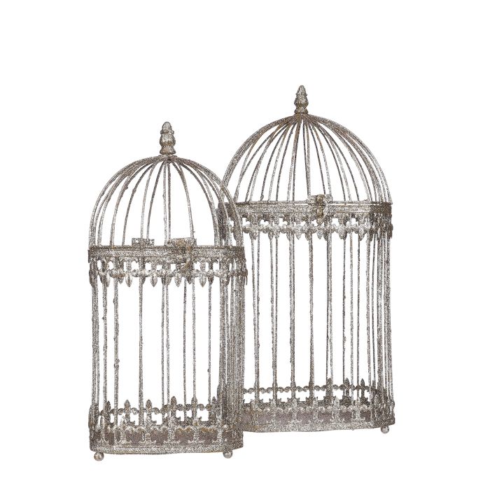 Fuglebure i sæt med 2 stk. i champagnefarvet. Fugleburene er i metal. Det største måler 44 cm i højden og har en diameter på 20 cm.