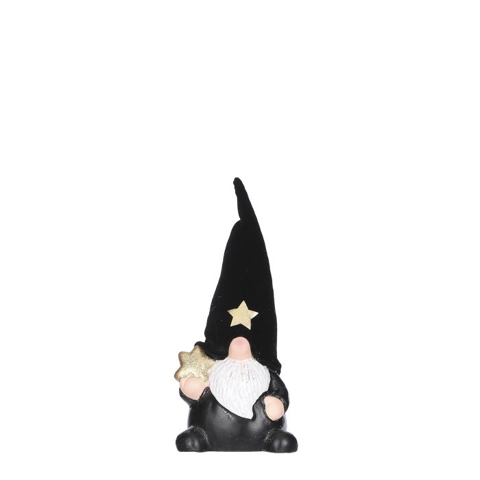 Gnom i sort keramik med glitterende stjerne i hånden og høj, blød hue.