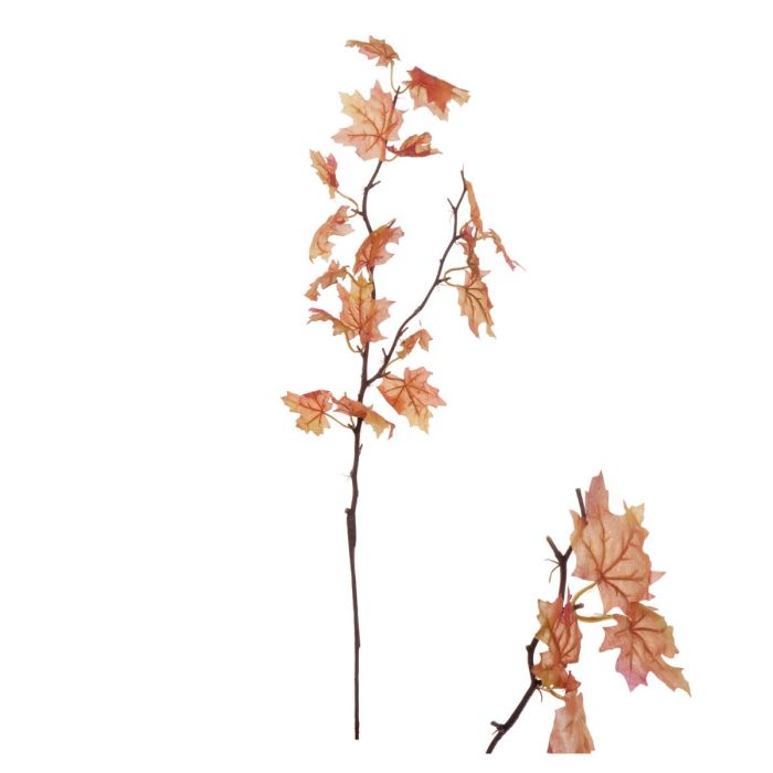 En dekorativ kunstig ahorngren i flot okkergul nuance, som er oplagt til efterårsdekorationer. Brug den alene i en vase, kombiner den med andre efterårsgrene, eller tilføj den i krukker og buketter for et fyldigt udtryk. Grenen er med blade i stof.