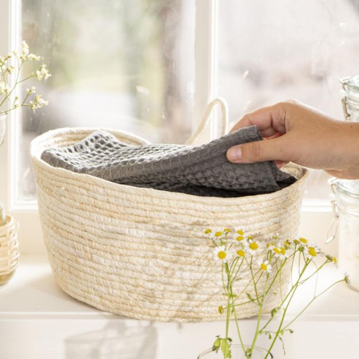 Håndklæde med flot vaffelmønster i en populær mørkegrå/antracit farve fra Liseleje-serien af Ib Laursen. Håndklædet er fremstillet i 100 % bomuld i en lækker, blød kvalitet, som føles behagelig mod huden og har en god sugeevne. Det dekorative vaffelmønster giver håndklædet et tidløst og roligt udtryk, der passer smukt ind på både badeværelset og i gæstetoilettet. Fås i flere farver og kan nemt kombineres med matchende håndklæder fra samme serie for et ensartet look.