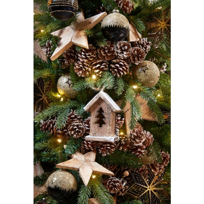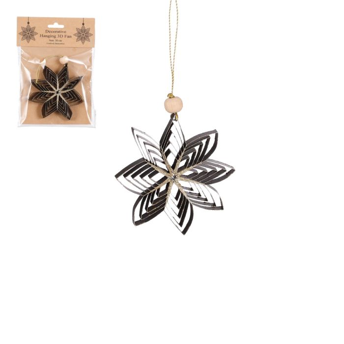 Håndlavet, foldet stjerne i sort papir med guldfarvede kanter. Med sine 10 cm har stjernen en god størrelse til både mindre vinduer og som pynt på juletræet. Stjernen findes i flere farver og størrelser.