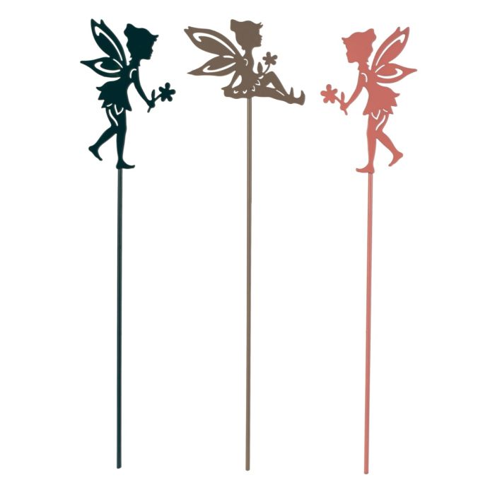 Pynt havens krukker og bede med en dekorativ blomsterpind i metal formet som en fe foroven. Blomsterpinden fås i tre forskellige farver; grøn, brun og rosa.