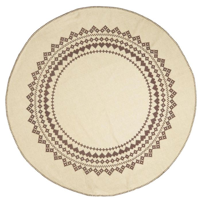 Smukt, naturfarvet juletræstæppe med mørkebrunt mønster og dekorative stikninger langs kanten. Tæppet er en del af Ib Laursens Stillenat-julekollektion og fås i både natur/mørkebrunt og natur/rødt. Med sin gode størrelse beskytter det gulvet og fuldender juletræets udtryk med en klassisk og naturlig stil.