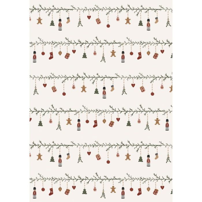 Få både smuk og bæredygtig julegaveindpakning med dette fine julegavepapir i genbrugspapir fra Ib Laursen. Papiret er dekoreret med ranker pyntet med klassiske juleikoner. Gavepapiret skaber en hyggelig stemning under juletræet. Det kraftige genbrugspapir er både slidstærkt og miljøvenligt. Det egner sig perfekt til indpakning af julegaver til familie og venner. Brug papiret sammen med natursnor, silkebånd eller vores fine velourbånd.