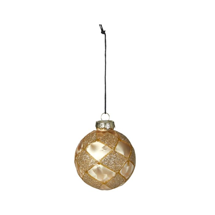 Julekugle med mønster i guld/champagne 8 cm i dia