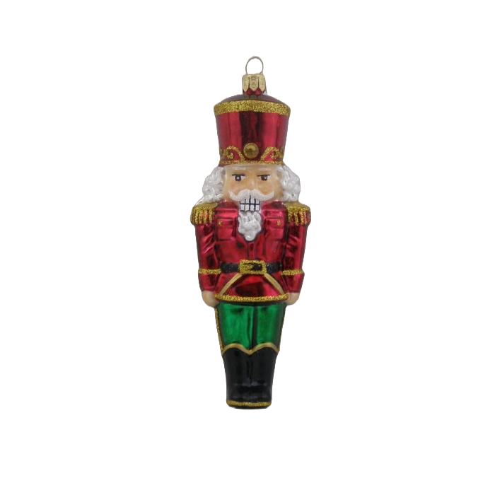 Detaljerig julekugle, der forestiller soldaten fra Nøddeknækkeren i fin uniform. Julekuglen er mundblæst og håndmalet hos det østrigske glaspusteri Hanco. Figurkugler på grene og juletræer er skønne blikfang mellem de klassiske julekugler.