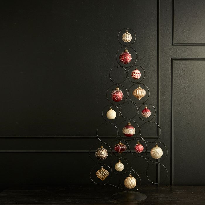 Julekugle fra Speedtsberg med mat, rød krakeleret overflad med enten blade eller grene som mønster på. Meget smukke og dekorative fx på grene, dekorationstræer eller som bordpynt.