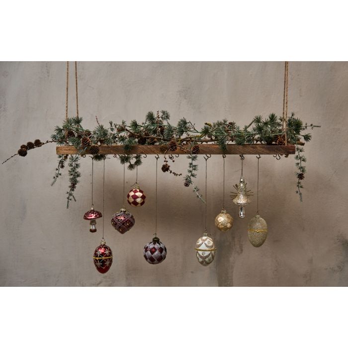 Smuk julekugle med rudeformet mønster i mat, krakeleret rød og snehvid. Kuglen har snor for nem ophængning og passer flot som pynt på juletræet, julebordet eller på en lysbakke. En elegant julekugle fra Speedtsbergs julekollektion, der tilfører varme og klassisk julestemning til hjemmet.