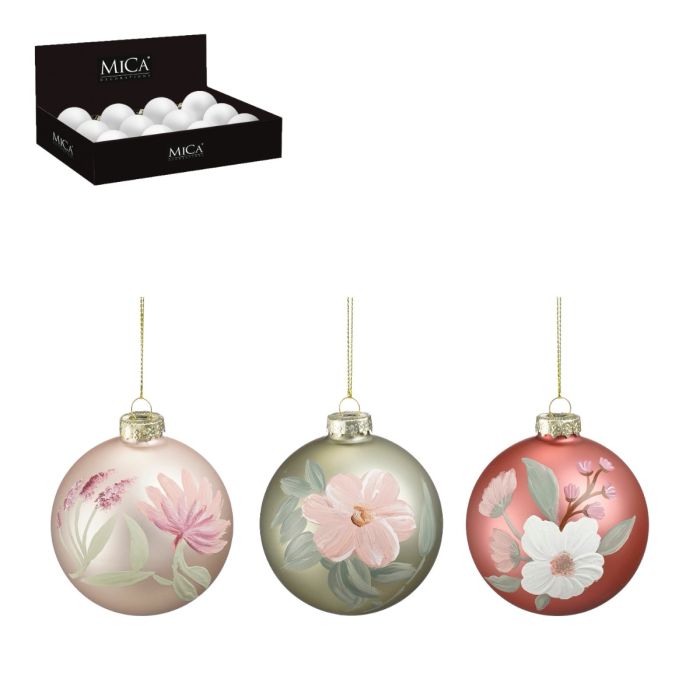 Pynt juletræet med disse julekugler i glas i matte pastelfarver. Kuglerne er dekoreret med smukke, malede blomstermotiver, som giver et romantisk og dekorativt udtryk, der passer perfekt til både klassisk og moderne juleindretning. Farverne i serien er lys rosa, lysegrøn og rød. En fin kombination af blide nuancer. De matte overflader understreger det eksklusive look, mens de malede detaljer gør hver kugle til noget særligt. Brug kuglerne på juletræet, som bordpynt eller til at pynte grene i en vase. De passer også perfekt som gave til dem, der elsker personlig og stilfuld julepynt.