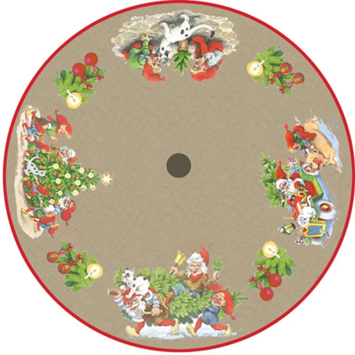 Juletræstæppe med nisser og gran 135 cm i dia