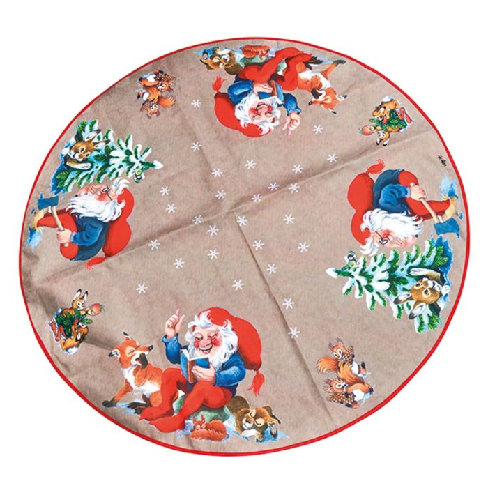 Skab en stemningsfuld og nostalgisk jul med dette smukke juletræstæppe illustreret af Vilhelm Hansen, den elskede kunstner bag flere klassiske danske eventyrmotiver. Her mødes hyggelige nisser og skovens dyr i et varmt og fortællende univers, som bringer minder frem om gamle julehistorier læst ved stearinlysets skær. Tæppet er fremstillet i polyester og har et rødt kantbånd, der giver et fint og traditionelt udtryk. Med sine 110 cm i diameter passer det perfekt under mindre og mellemstore juletræer og giver et indbydende samlingspunkt for familiens gaver og juleglæder. For dig der ønsker et større tæppe, findes motivet også i en større udgave, så hele julepynten kan matche smukt i hjemmet.
