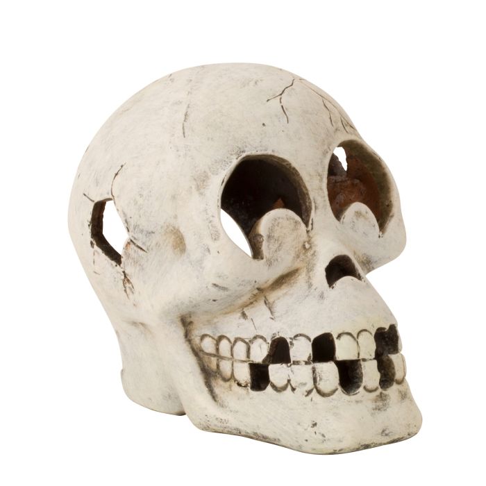 Det uhyggelige kranie måler L: 12 cm x B: 12 cm x H: 12 cm.