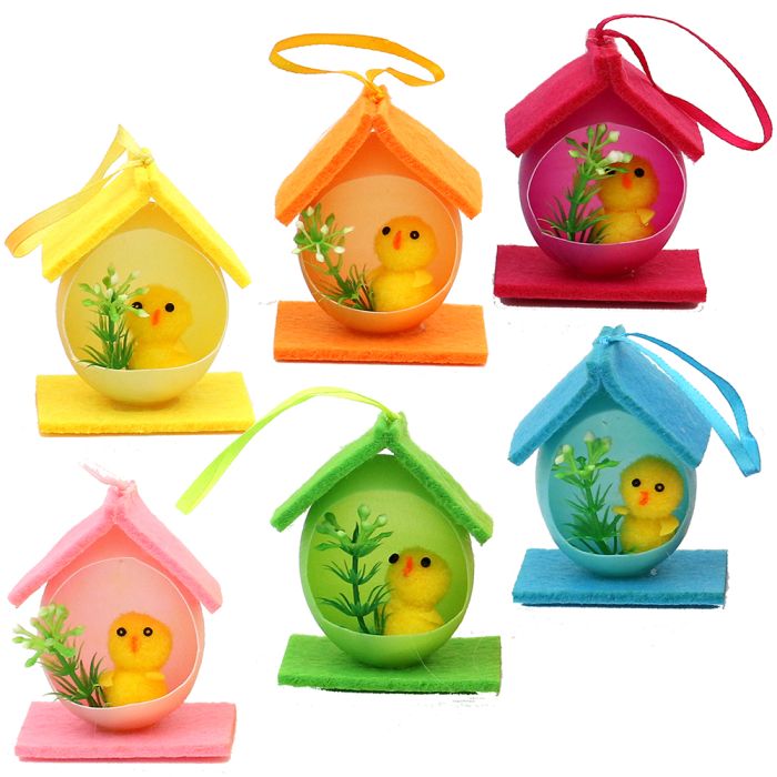 Denne 2-pak med kyllinger i æggehus er et legende og farverigt indslag i påskens dekorationer. De små chenille kyllinger kigger frem fra deres æggehuse og giver indtrykket af at være klar til at møde foråret udenfor. Det finurlige design skaber en lille fortælling, hvor kyllingerne har forladt ægget og i stedet gemmer sig i deres egne små huse.