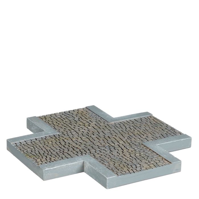 Med dette vejstykke med kryds fra Luville har du mulighed for at tilføre realistiske detaljer til din juleby. Vejstykket er med gråt brostensmønster afgrænset af kantsten i en lysere grå nuance. I samme serie fås også buede vejstykker, lige vejstykker og en rundkørsel.