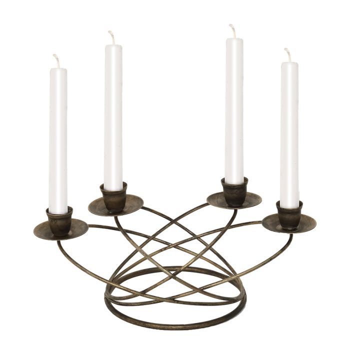 Lysestage til 4 lys i mørk, antik guldfarve. Lysestagen er en nyfortolkning af en klassisk 4-armet lysestage. Den kan bruges hele året. Prøv med snoede eller farvede lys i.