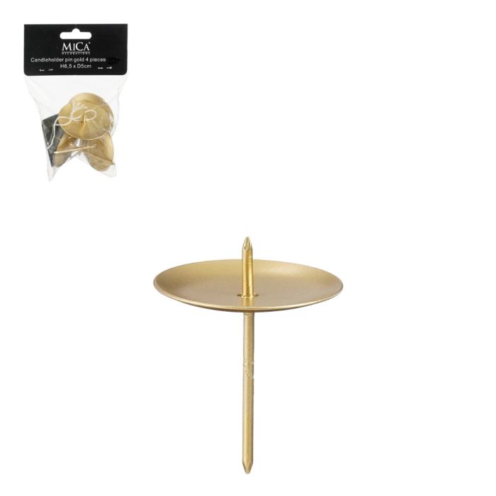 Praktiske og enkle lysholdere i guldfarvet metal. Sættet indeholder 4 stk., som passer til mindre bloklys og er ideelle til adventskransen eller juledekorationen. Hver lysholder har et praktisk spyd, der kan stikkes ned i kransen og et, som kan stikkes op i lyset, så lysene står stabilt og sikkert. Det blanke guldfarvede metal giver et elegant og klassisk udtryk.