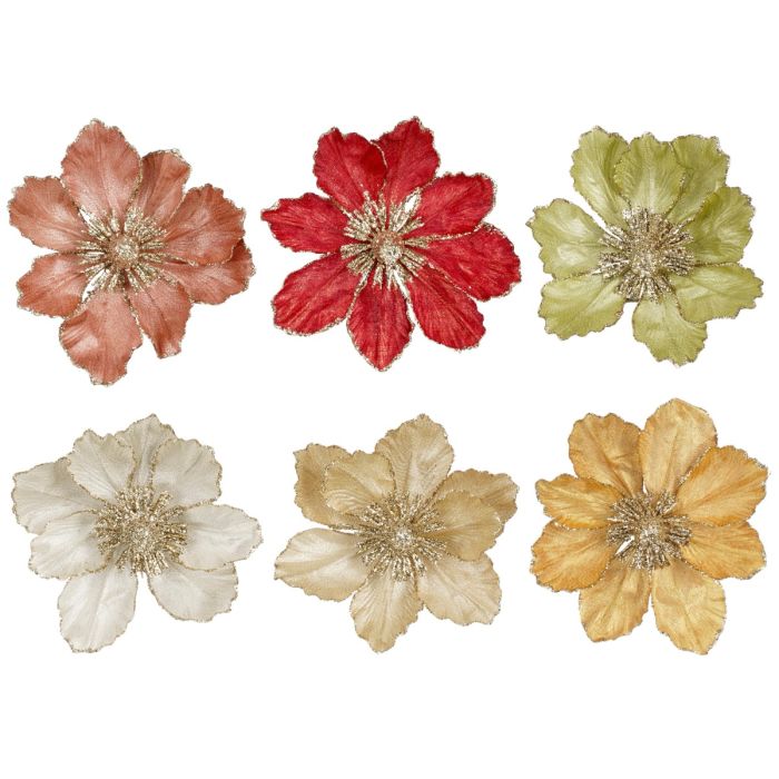 Skab smukke og stemningsfulde dekorationer med dette magnoliablomsterhoved, der er designet med silkebløde, farvede blomsterblade og en let glimmerkant, som fanger lyset på fineste vis. Midten er rigt dekoreret og giver blomsten et elegant og levende udtryk, der fremhæver detaljerne i enhver jule- eller helårsdekoration.