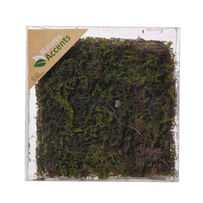 Grønt mos i flot, stærk og grøn farve til dekorationer, kranser eller små buske i julebyen. Måler 14 cm x 14 cm.