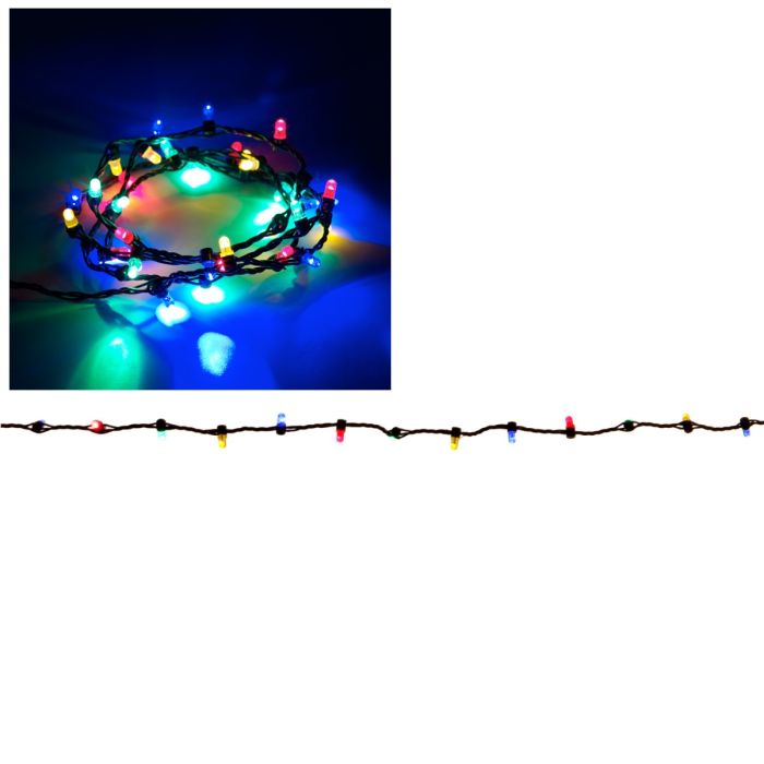 Multifarvet lyskæde er en fin kæde med 36 blinkende lys.Lyskæden bruger 2 AA batterier, batterier medfølger ikke. Kan også bruges sammen med vores 3,0 volts adapter.