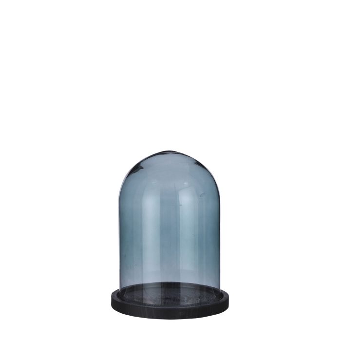 Osteklokke med sort bund og mørkt petrolfarvet glas. Kan bruges året rundt til skiftende dekoration eller til fx små sukkulenter. Meget dekorativ med f.eks. en lyskæde indeni.