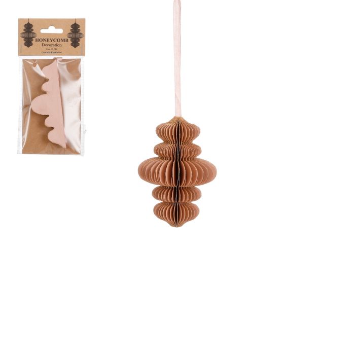 Dekorativ istap i foldet, lyserødt papir med farvede kanter. Istappen er fremstillet i genbrugspapir. Den foldes ud og lukkes med en lille magnet. Der er snor i. Findes i mange former og farver.