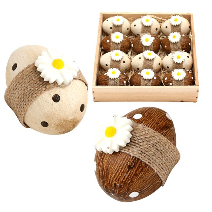 Påskeæggene fås i to farvevarianter, råhvid og brun, som begge har deres eget udtryk. Den lyse variant giver et let og luftigt indtryk, mens den brune tilfører dybde og varme til dekorationen. Farverne kan bruges hver for sig eller kombineres på påskebordet for et mere varieret og harmonisk udtryk. Æggenes størrelse gør dem velegnede som bordpynt, hvor de kan placeres enkeltvis, i små grupper eller i en dekorativ skål.