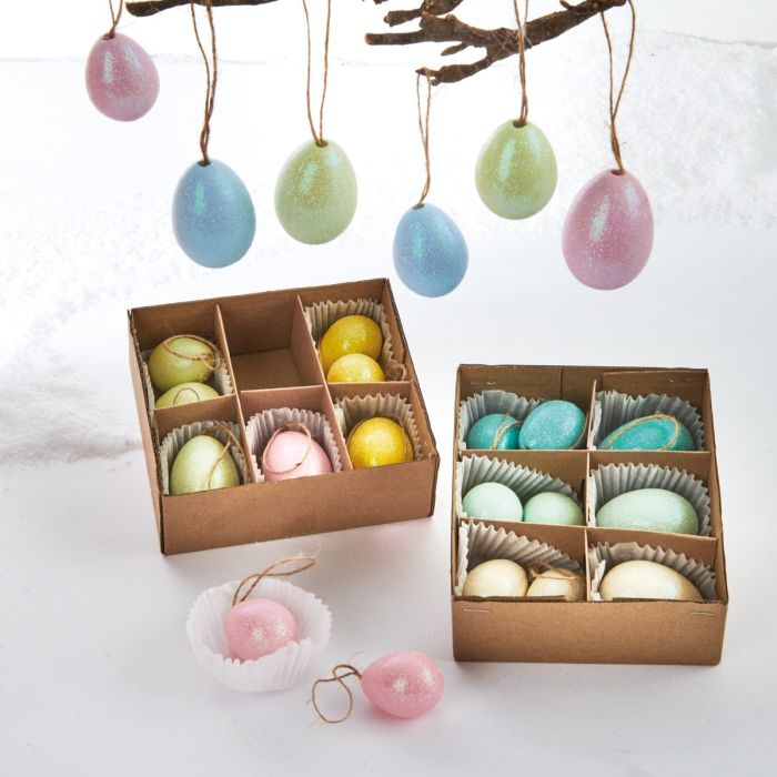 De glitrende hængeæg skaber en rolig og forårslet stemning i hjemmet og kan bruges år efter år som en fast del af påskepynten.