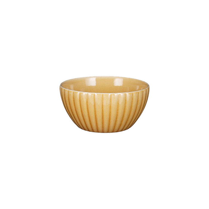 Pesca skål i keramik fra Mica Decorations. Skålen er fx morgenmad, tilbehør og snacks. Stentøjsserien er i flot okkerfarvet-nuance med mønster og glat glasur. Alle produkter i Pesca-serien er håndlavede og har derfor unikke former. Serien består af skåle, tallerkner og krus.