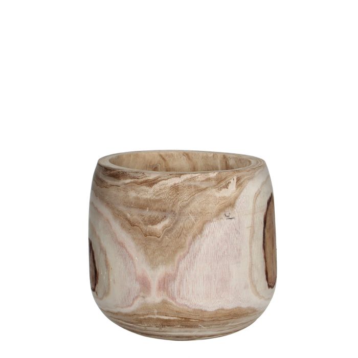 Pia urtepotte i kejsertræ også kendt som paulownia wood. Træsorten giver en smuk struktur i overfladen og farvespil i lyse beige nuancer.