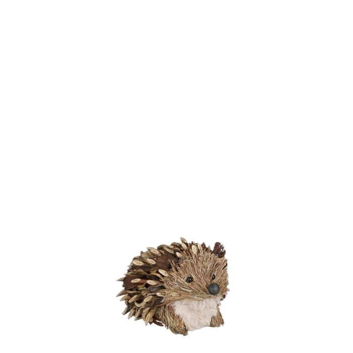 Dekorativt lille pindsvin med naturlige materialer som pigge. Kan fx bruges som efterårspynt i krukker eller på kranse.