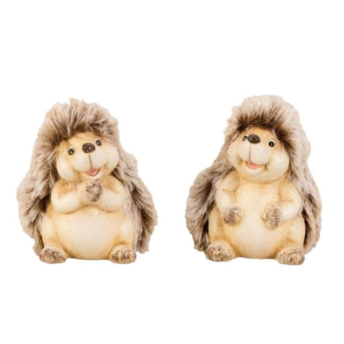 Søde pindsvin med bløde, pelslignende pigge og et varmt, glad udtryk, der straks skaber hygge i efterårsdekorationerne. De små figurer passer perfekt på en hylde, i vindueskarmen eller som del af en opstilling med farverige blade og naturmaterialer. Deres venlige smil gør dem til en sød detalje i både stue, entre og børneværelse. Fremstillet i polyresin med let glimmer og med blød pelset ryg for et ekstra nuttet udtryk. Findes i to varianter.